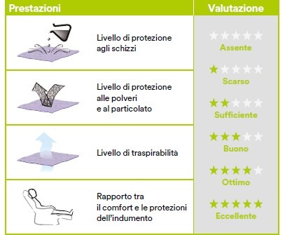 Tutti gli indumenti 3M sono accompagnati da una grafica che riassume le loro caratteristiche principali: