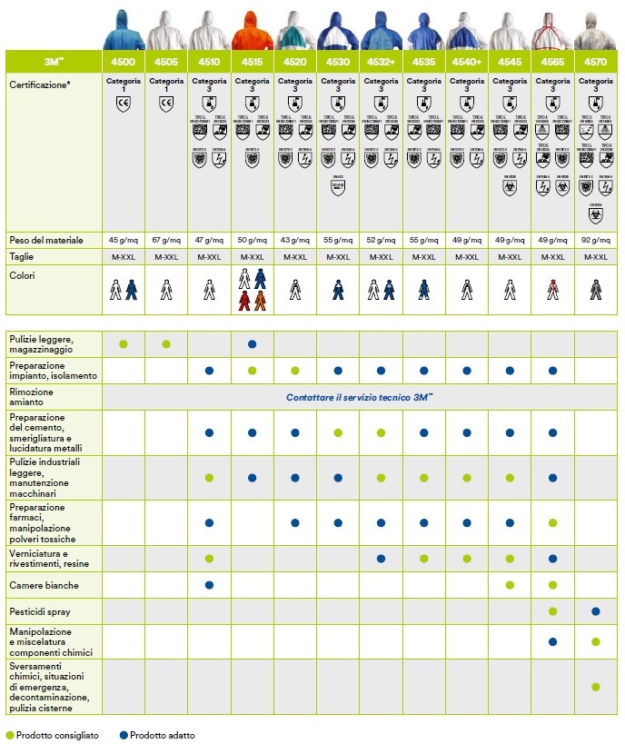 La seguente guida offre un confronto tra i diversi materiali utilizzati per gli indumenti di protezione 3M.
