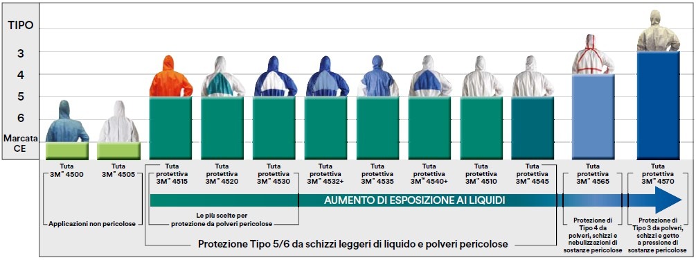 Gli indumenti di protezione possono essere progettati per proteggere durante applicazioni pericolose (approvati CE in Categoria III) o applicazioni non pericolose (approvati CE in Categoria I). Essi sono infatti studiati e testati per diversi tipi di rischi, dal particolato ai liquidi e gas.