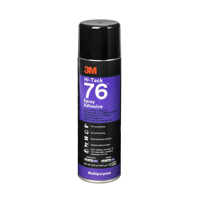 L’adesivo spray 3M 76 Hi-Tack, crea legami efficaci e forti per molti materiali difficili da incollare, come polietilene e polipropilene. Colore: crema traslucido. Bomboletta da 500 ml.