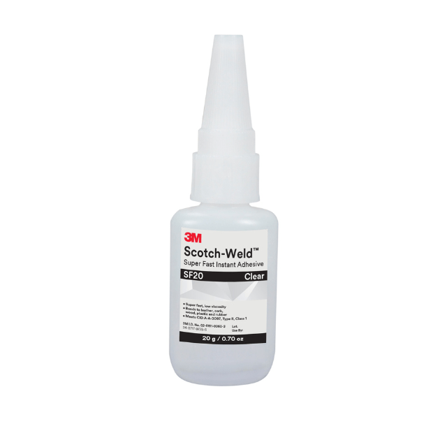 Il 3M Scotch-Weld SF20 è un adesivo istantaneo cianoacrilico a bassa viscosità, formulato per garantire una polimerizzazione ultra rapida e un incollaggio forte e duraturo su una vasta gamma di substrati, inclusi plastica e gomma (con primer appropriato). Il prodotto rispetta i requisiti CID A-A-3097 Tipo II, Classe 1, assicurando prestazioni affidabili anche in ambienti critici. Colore: trasparente.