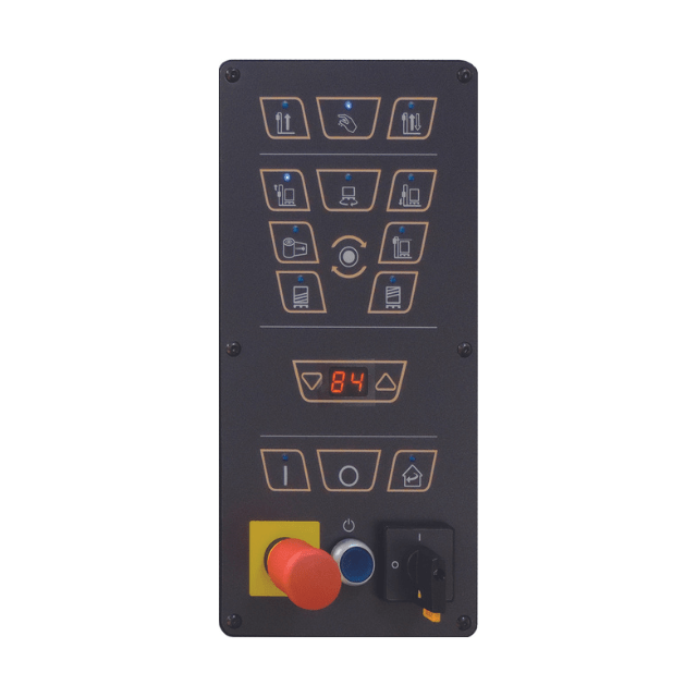 - Fotocellula per lettura altezza pallet: permette di regolare automaticamente l’altezza del carico in base alla dimensione del pallet;