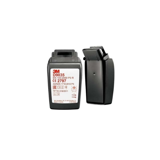 I filtri Antiparticolato 3M D9035 P3 forniscono la protezione delle vie respiratorie dal particolato (polveri sottili e nebbie) di classe P3. Dotato di custodia rigida e cartuccia in plastica ABS. I due filtri a doppio flusso, i primi al mondo, si combinano per creare quattro flussi d’aria che rendono la respirazione estremamente naturale e confortevole con una resistenza all’inalazione inferiore a 5mbar.