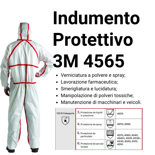L’Indumento Protettivo 3M 4565 (categoria III, tipo 4-5-6) è stato appositamente progettato per garantire un’esperienza confortevole e una difesa efficace contro gli spray di sostanze chimiche di tipo 4, le polveri pericolose di tipo 5 e gli spruzzi liquidi limitati di tipo 6. Grazie alla sua barriera resistente, questo indumento non microporoso è stato testato per la permeazione e certificato secondo la norma EN 14126 per la protezione contro gli agenti infettivi. Infine è antistatico.