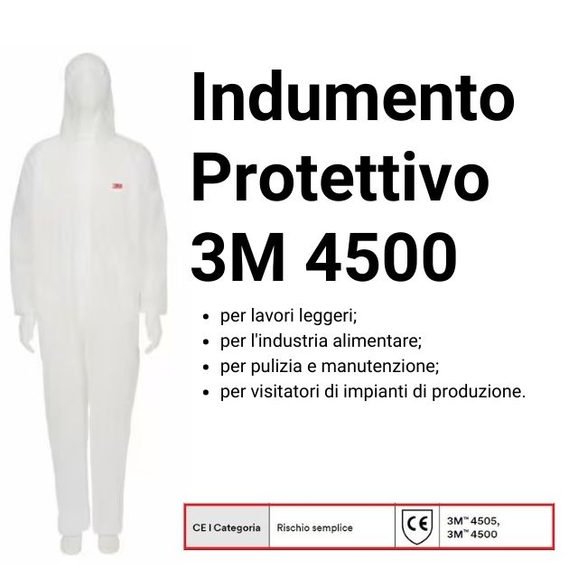 La 3M 4500 (categoria I) è un indumento protettivo leggero in polipropilene traspirante 45 g/m², progettata per proteggere da polveri e liquidi non pericolosi. Morbida e confortevole, garantisce eccellente traspirabilità e libertà di movimento anche durante lunghe ore di lavoro.