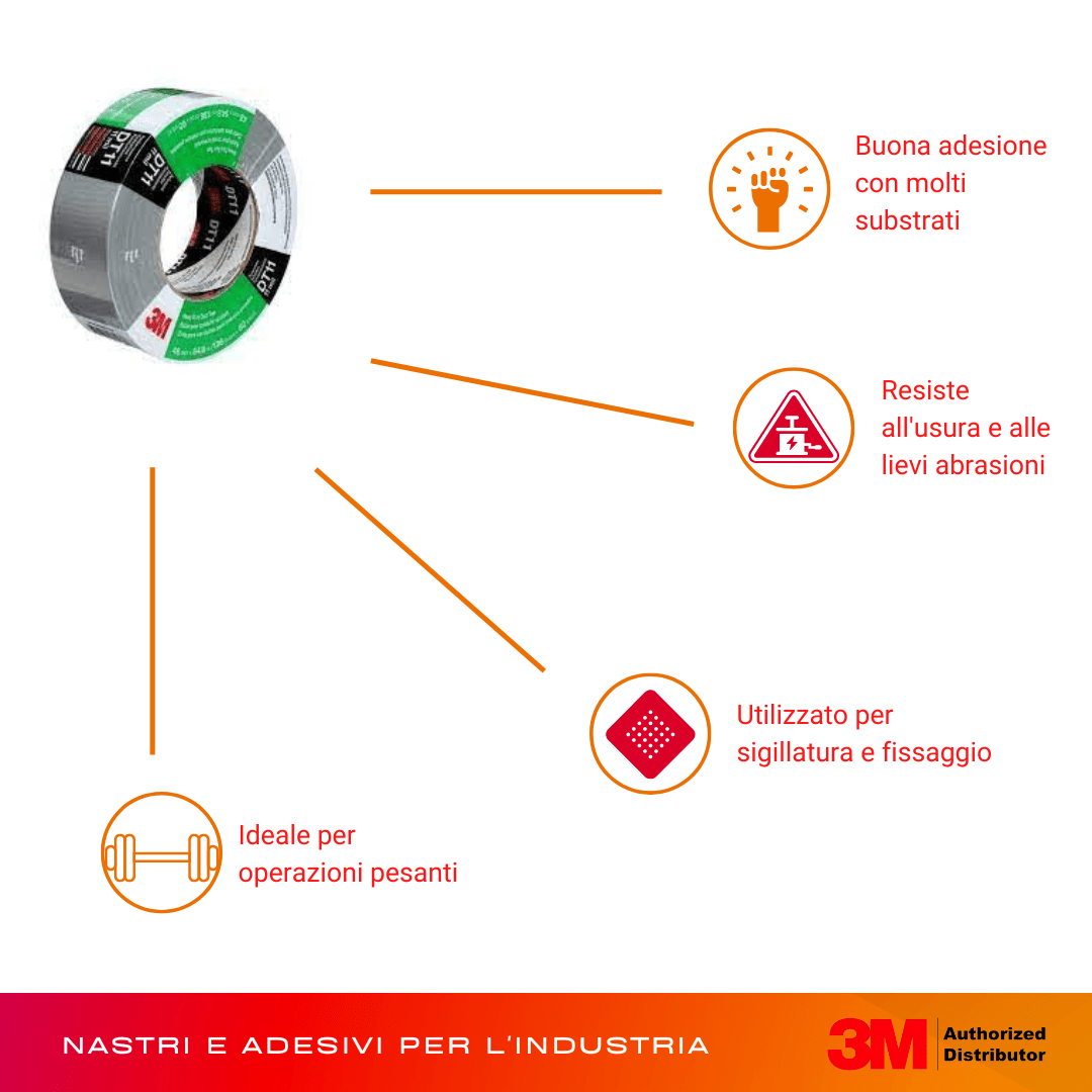 - Sviluppato inizialmente per le applicazioni di riscaldamento, ventilazione e condizionamento aria (HVAC), il nastro telato viene usato oggi in numerose applicazioni di manutenzione, riparazione e costruzione. Grazie al suo design, il nastro adesivo telato 3M DT11 è considerato la scelta ideale per i lavori più impegnativi;