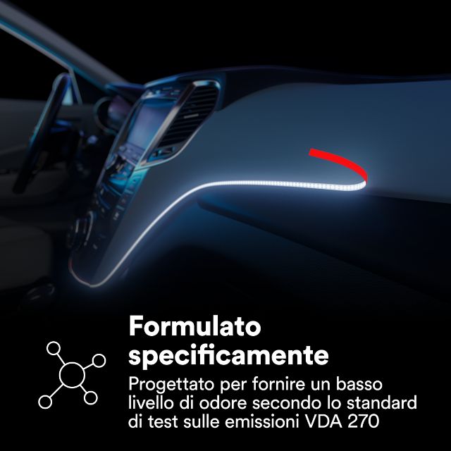 - Riduzione fino all’85% di VOC rispetto alle comuni schiume acriliche biadesive (test secondo VDA278), rendendolo più sicuro e sostenibile.