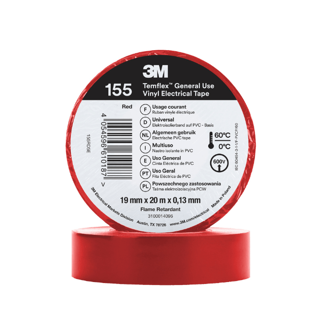 Il 3M Temflex 155 è un nastro isolante vinilico economico e versatile, ideale per applicazioni di uso generico e quotidiano come marcatura di fili, isolamento e fasciatura in condizioni ambiente. Spessore: 0,13 mm. Dimensioni rotolo: mm 19×20 mt.