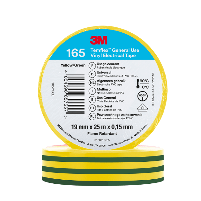 Il 3M Temflex 165 è un nastro isolante vinilico è un prodotto multiuso, perfetto per applicazioni quotidiane di media intensità, come rivestimenti protettivi, fasciature, marcature e isolamento di cavi a bassa tensione. Spessore: 0,15 mm. Dimensioni rotolo: mm 19×25 mt.