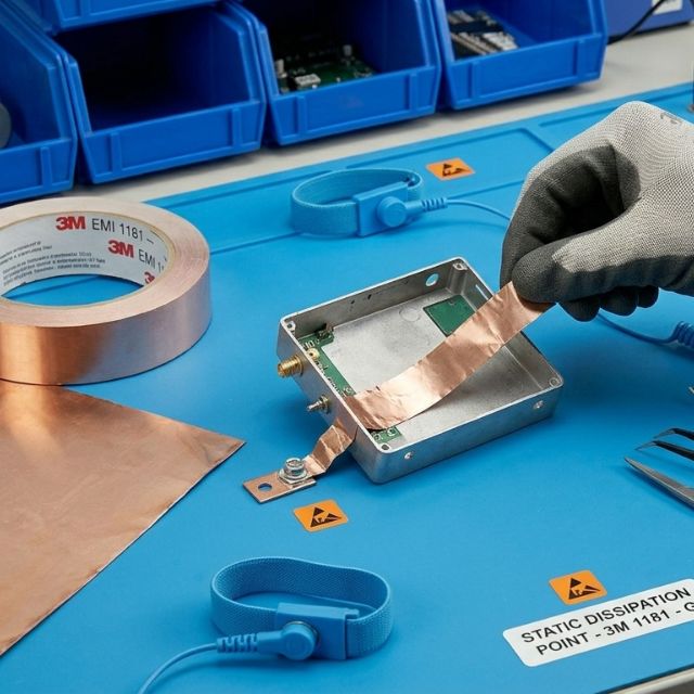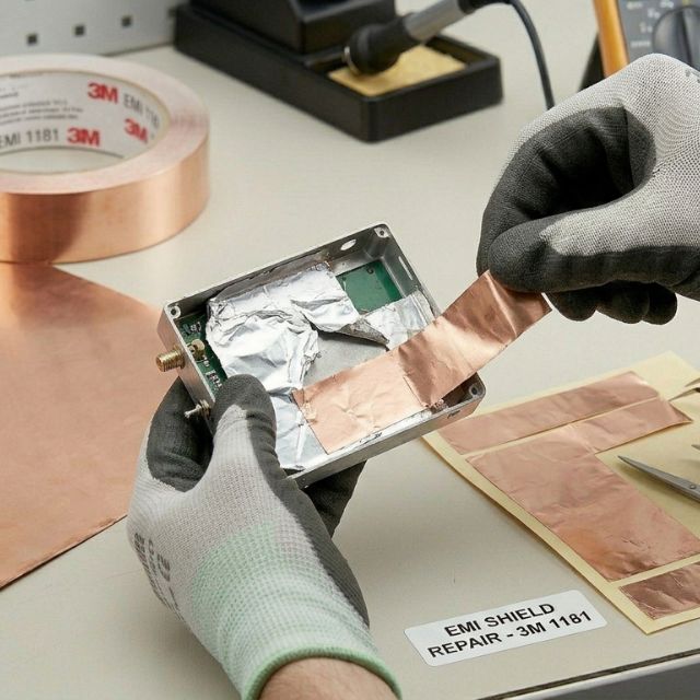 Il nastro adesivo in fogli di rame 3M EMI 1181 è dotato di un adesivo acrilico conduttivo, quindi ideale per schermatura EMI/RFI per condizioni non corrosive, dissipazione di cariche statiche e messa a terra. È anche conforme ai requisiti UL‑510A e RoHS, garantendo alta affidabilità anche in ambienti industriali. Spessore totale senza liner: 0,066 mm. Colore: Rame. Lunghezza: 16,5 mt.