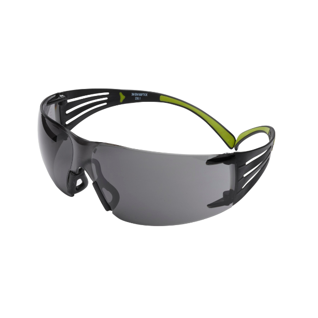 Gli Occhiali di Protezione 3M SF402AS/AF Secure Fit Serie 400 possiedono una montatura verde/nera con lenti grigie antigraffio e anti-appannamento. Sono ideali per una protezione degli occhi che assicura maggiore comfort e design elegante in una vasta gamma di colori attuali. Pesano infatti solo 33 grammi e possiedono l’innovativa tecnologia 3M Pressure Diffusion Temple per la distribuzione uniforme della pressione nella zona temporale, un nasello morbido costituito da un unico pezzo e stanghette a doppia iniezione.