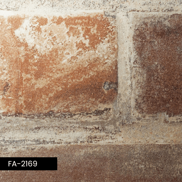 Il rivestimento 3M DI-NOC FA-2169 richiama l’estetica delle superfici in mattone o malta ceramica, con un pattern astratto che evoca la trama rustica e stratificata dei materiali ceramici artigianali. La texture è moderatamente irregolare, con crepe leggere e una finitura opaca che ricorda la superficie porosa dei mattoni antichi, pur rimanendo pulita e contemporanea. Il colore tende a tonalità terrose e calde, restituendo un effetto naturale e materico, perfetto per interventi decorativi eleganti ma non ornamentali. Dimensioni: mm 1220×50 mt.