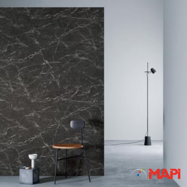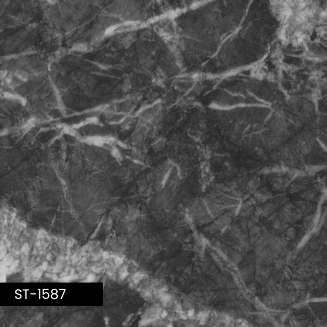 Il rivestimento 3M ST-1587 è una finitura setosa e sabbiata, finemente granulare ma uniforme, che riproduce una pietra naturale scura con venature leggere e pattern molto sofisticati. Crea così un effetto pietra moderno ed elegante. Perfetto per ambienti contemporanei e contract: superfici d’accento come pareti, pannelli divisori, elevatori, colonne, mobili o porte che richiedono un look materico senza il peso visivo del materiale naturale. Dimensioni: mm 1220 x 50 mt.