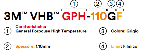 I Nastri 3M VHB GPH offrono illimitate opportunità di applicazione e design, permettendo di eliminare viti, rivetti e altre tipologie di fissaggio meccanico, migliorando così la progettazione dal punto di vista estetico e produttivo. In particolare la serie GPH corrisponde al General Purpose High Temperature, introducendo una nuova tipologia di codici cosiddetti parlanti, per un più semplice utilizzo del prodotto.